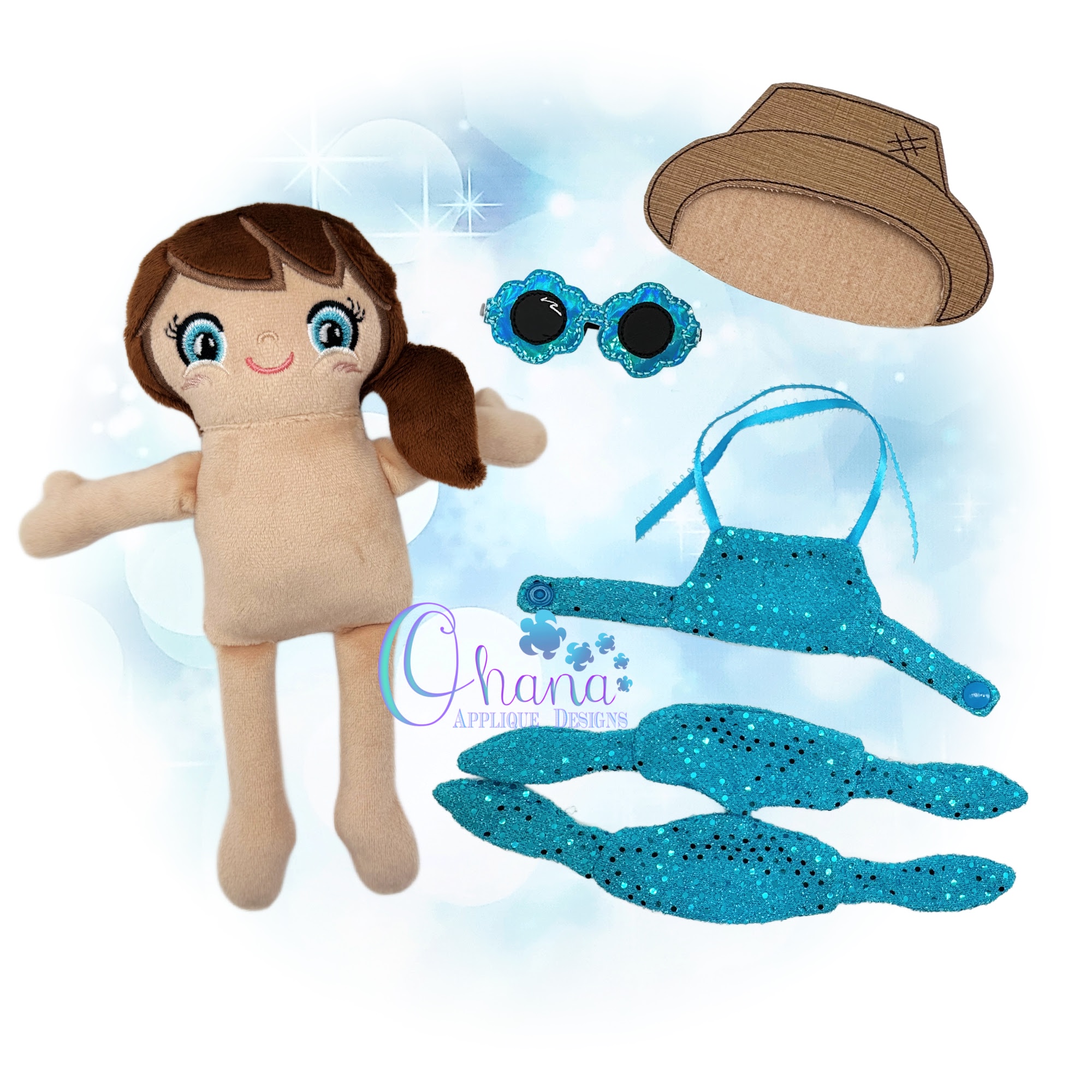 Bring a smile to many faces with this Beach Girl Dress Up Doll Stuffie Embroidery Design. Your loved ones will truly love these personalized plushies. You can stitch them as gifts or you can also involve the little ones in your life by letting them choose the colors and fabrics. Especially Great for gifts along with Birthday Parties!