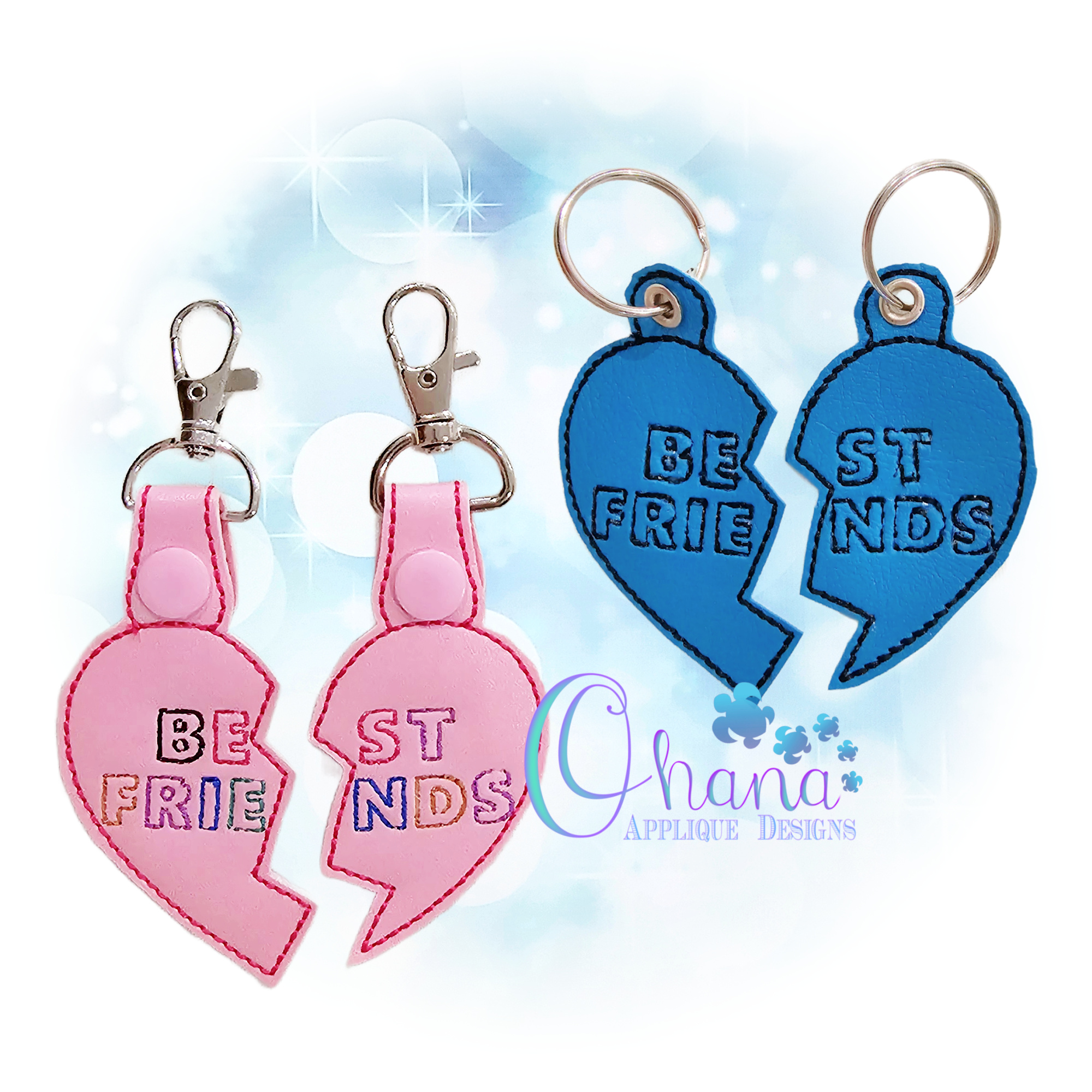 Stitchers can complete this Best Friends Split Key Chain Embroidery design in one quick and easy hooping. You can stitch a single design or take advantage of the multi files to stitch more than one at a time.