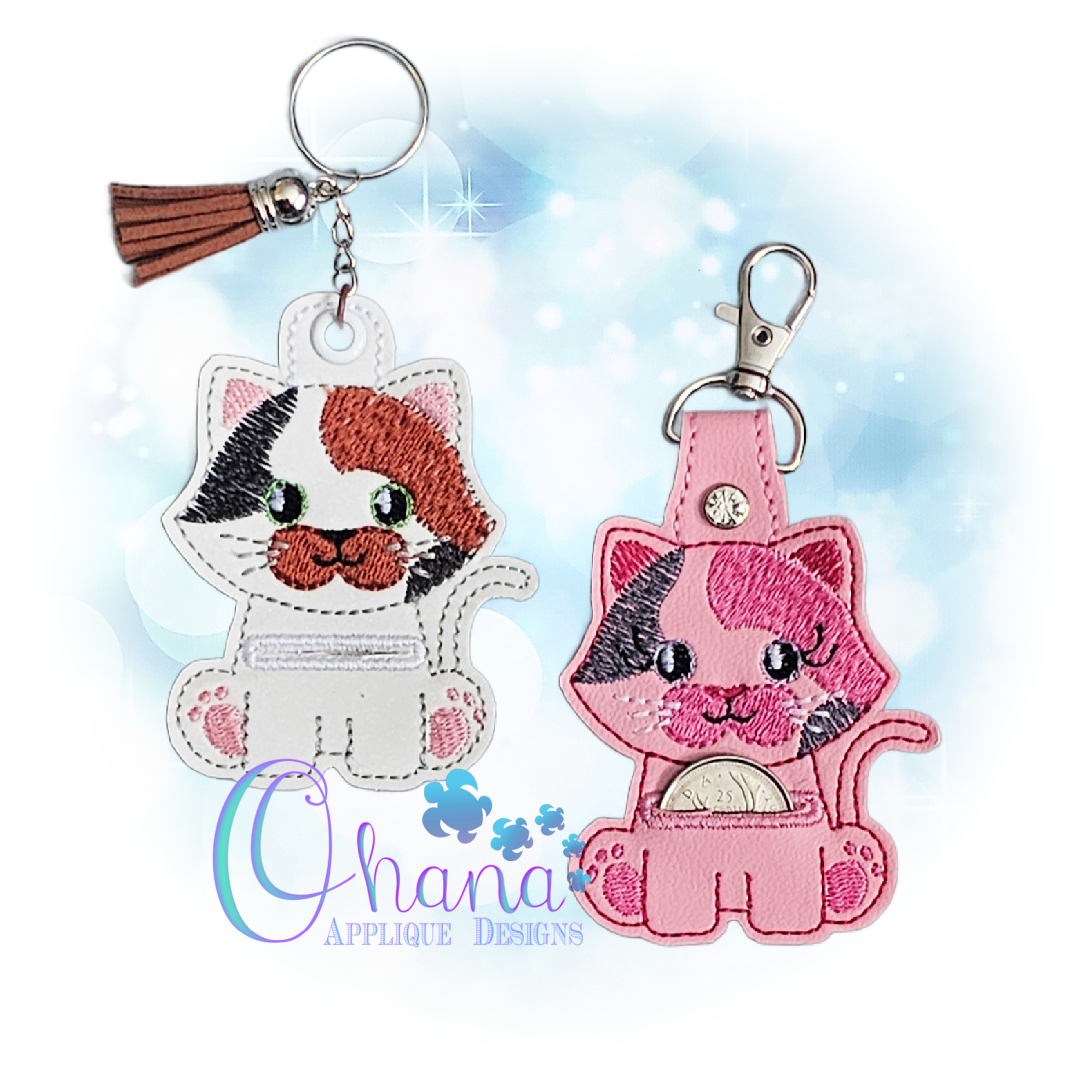 Keep that coin ready at all times with this adorable Calico Cat Coin Keeper Key Chain embroidery design is easy and fun. In addition snap Tabs are a great way to add personality to everyday items! For instance, you can add them to book bags, zippers, key rings and many more areas!