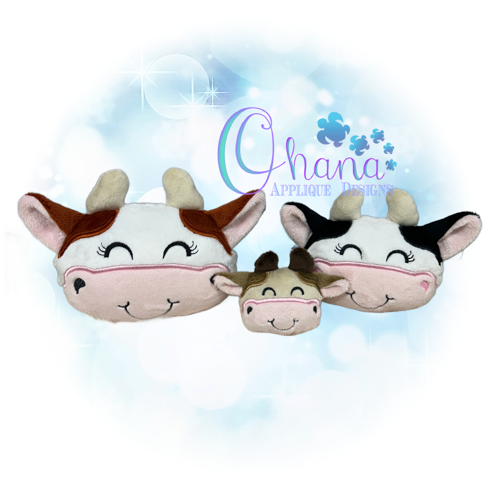 You will find the following hoop sizes are included for the Cow Head Pillow Stuffie Embroidery Design.