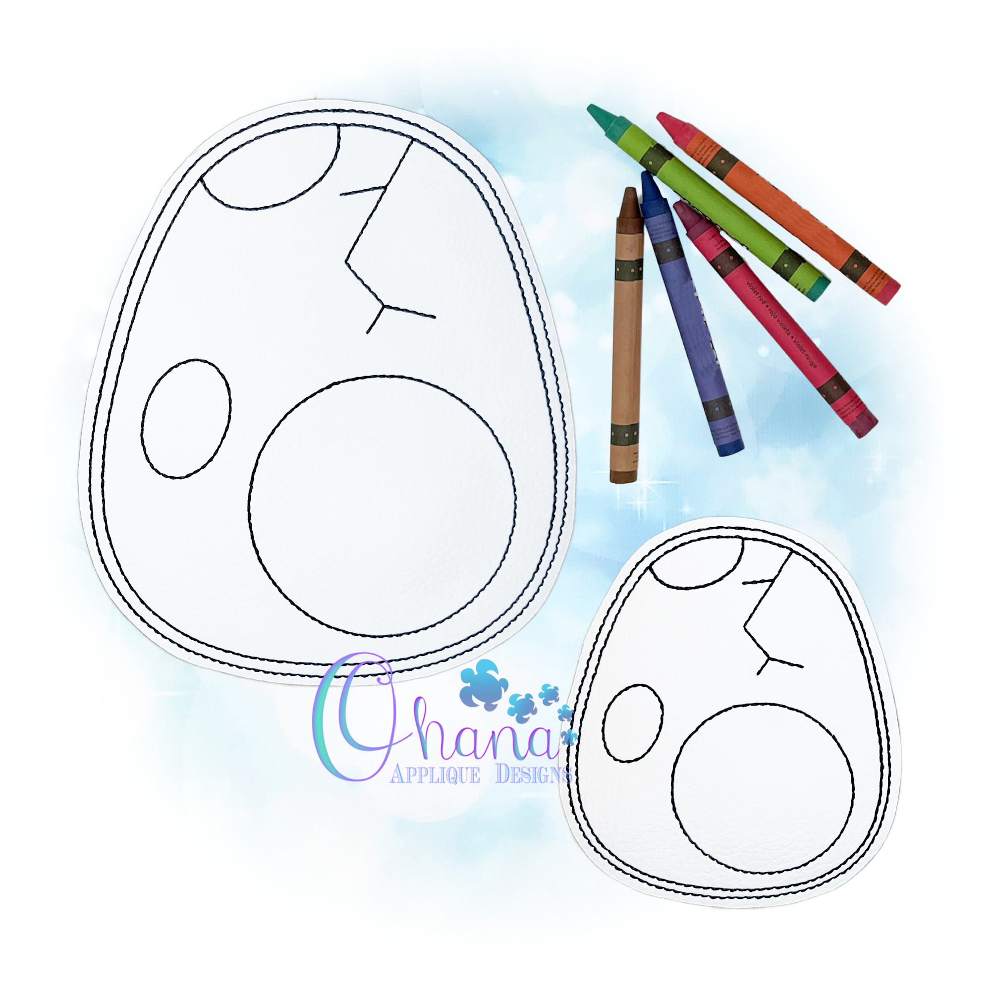 Stitchers will find that coloring doll designs are normally stitched out on white vinyl. Or use white felt covered with a clear vinyl. Pair these dolls with your washable crayons or markers so they can be colored over and over again for hours of fun!
