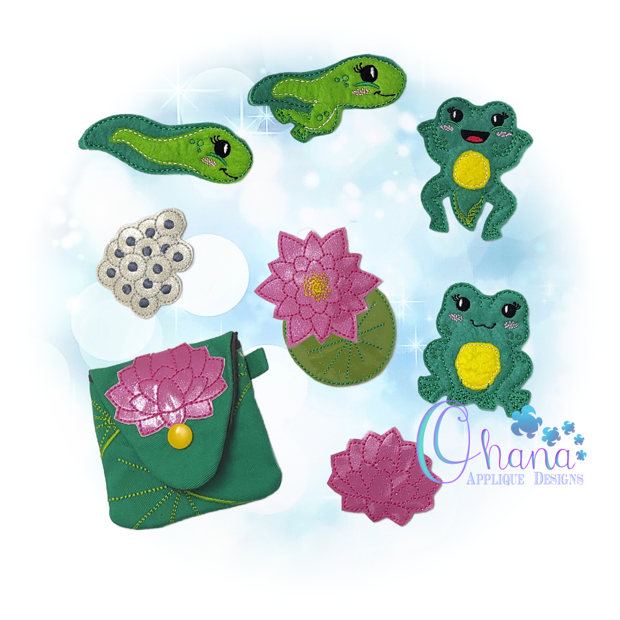 Have hours of fun with this absolutely adorable Frog Life Cycle Coin Purse Play Set Embroidery Design.