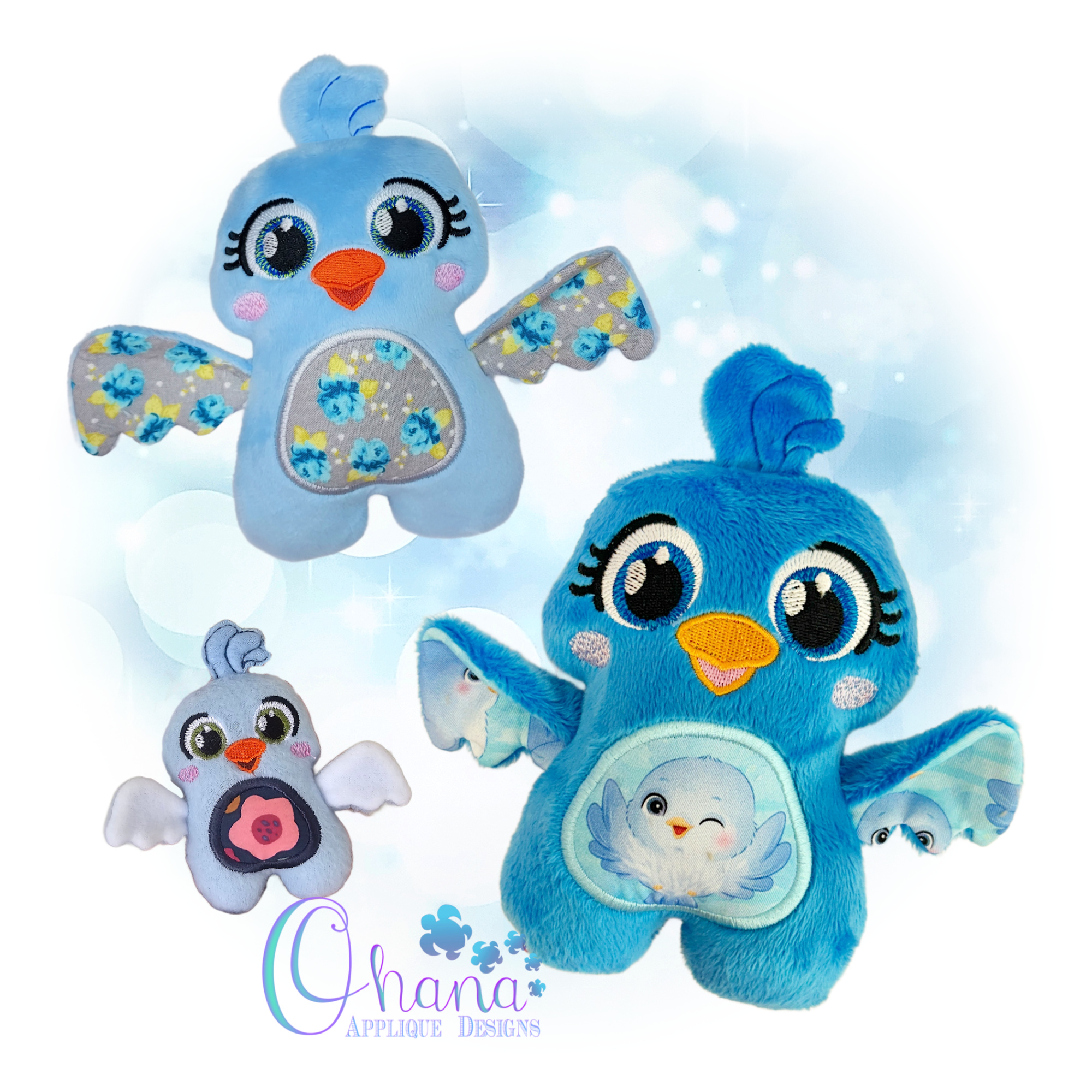 Bring a smile to many faces with this Huggable Blue Bird Stuffie embroidery design. Your loved ones will truly love these personalized plushies. You can stitch them as gifts or you can also involve the little ones in your life by letting them choose the colors and fabrics. Especially Great for Baby Showers, Christmas, and Easter, along with Birthday Parties!