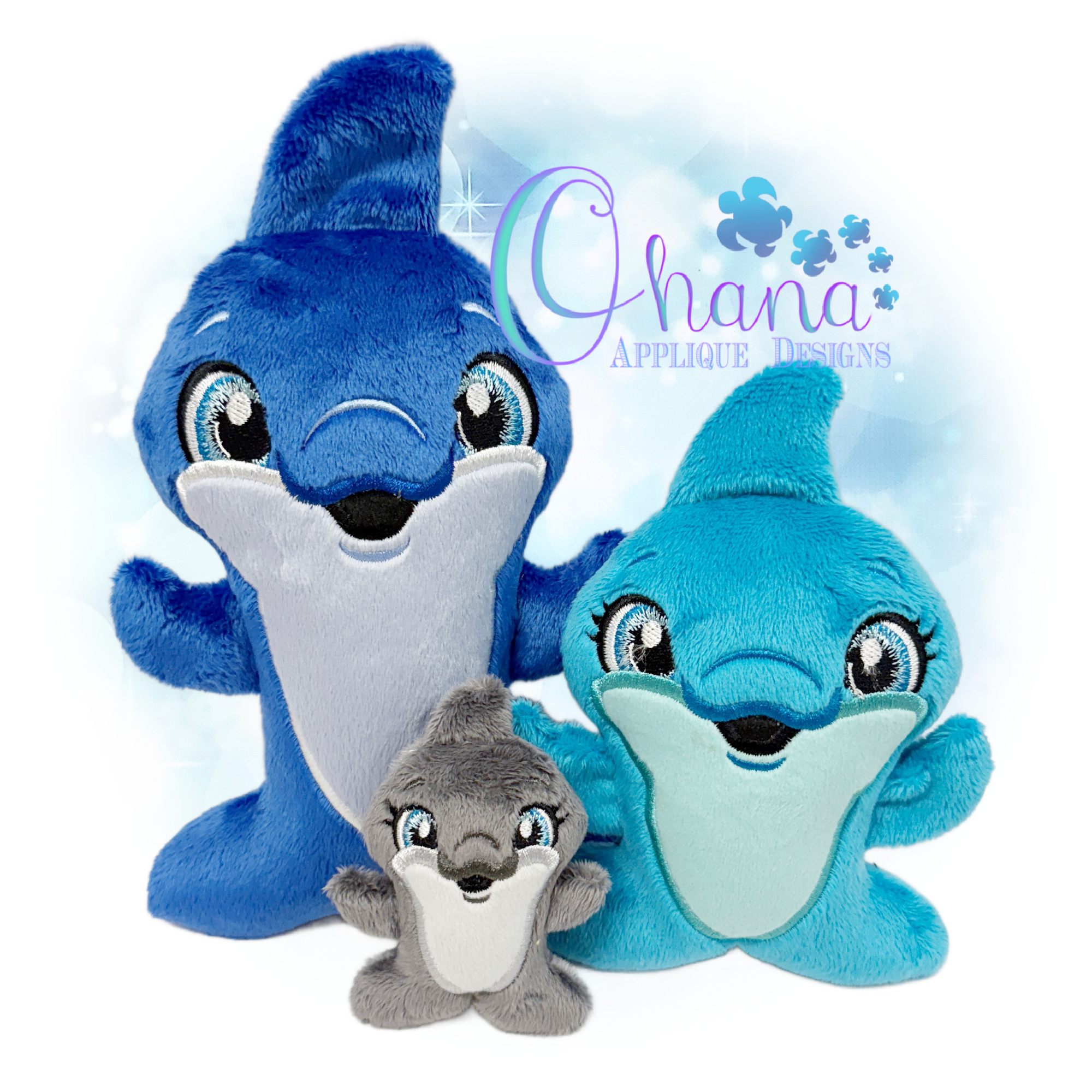 You will find the following hoop sizes are included for the Huggable Dolphin Stuffie Embroidery Design.