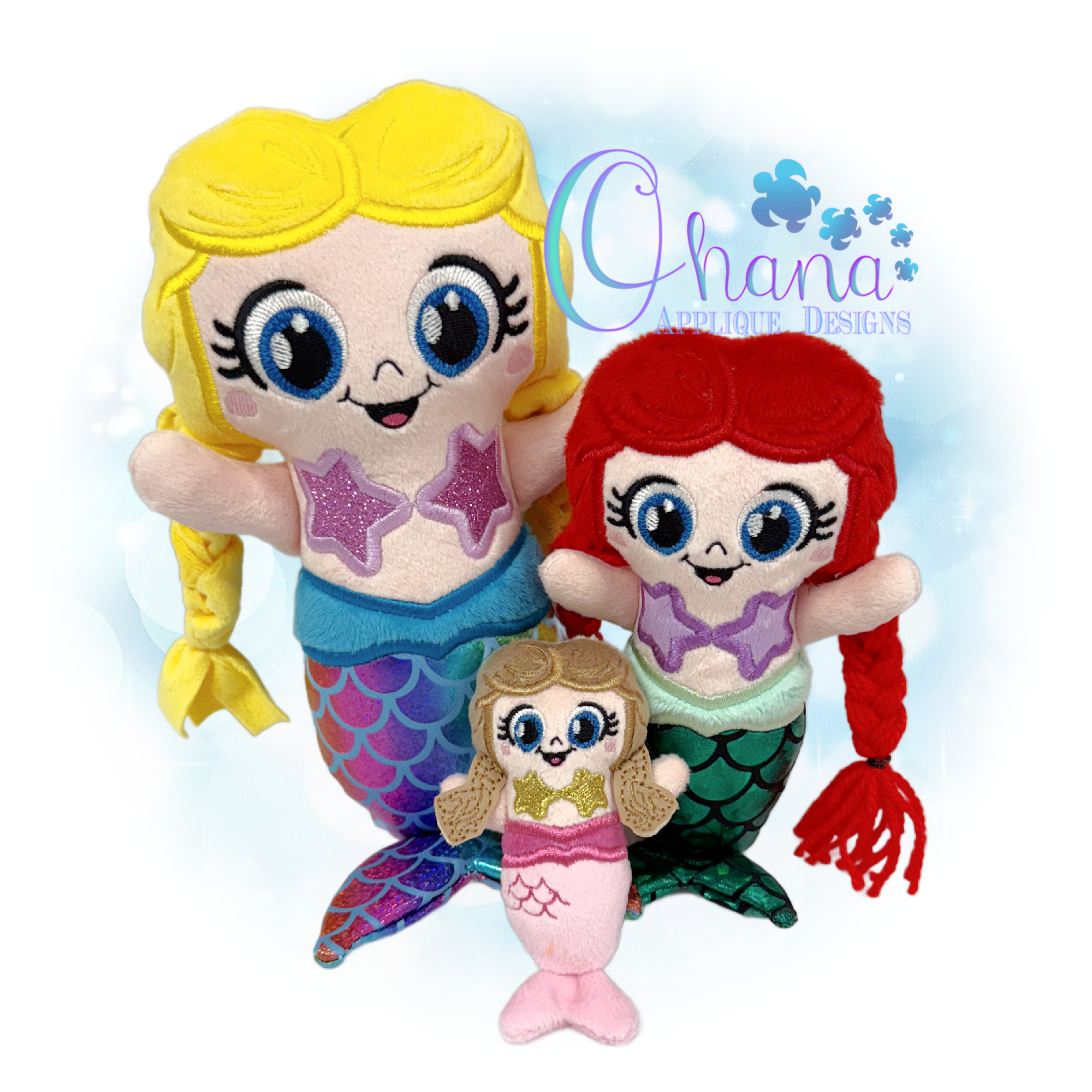 Bring a smile to many faces with this Huggable Mermaid Stuffie Embroidery Design. Your loved ones will truly love these personalized plushies. You can stitch them as gifts or you can also involve the little ones in your life by letting them choose the colors and fabrics. Especially Great for gifts along with Birthday Parties!