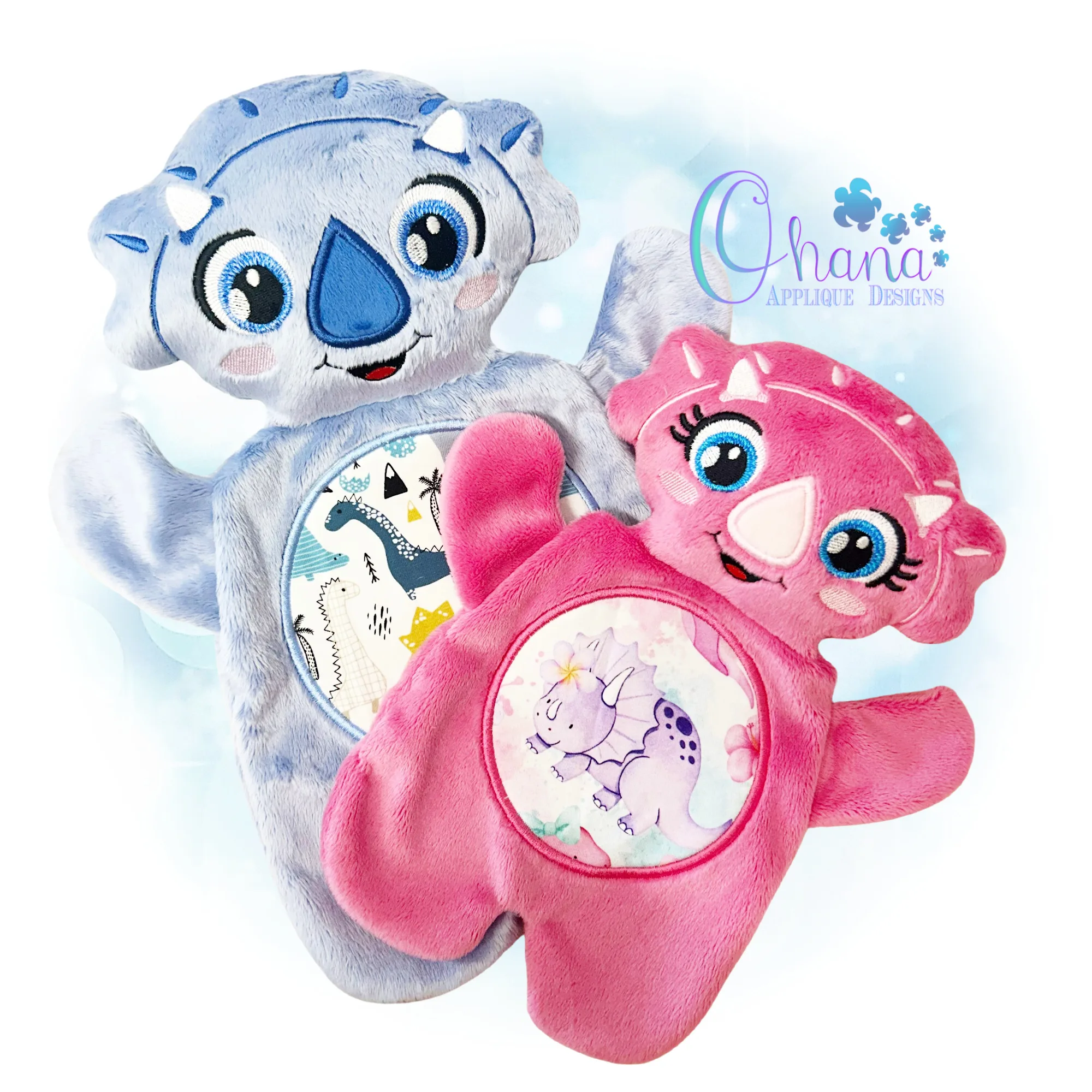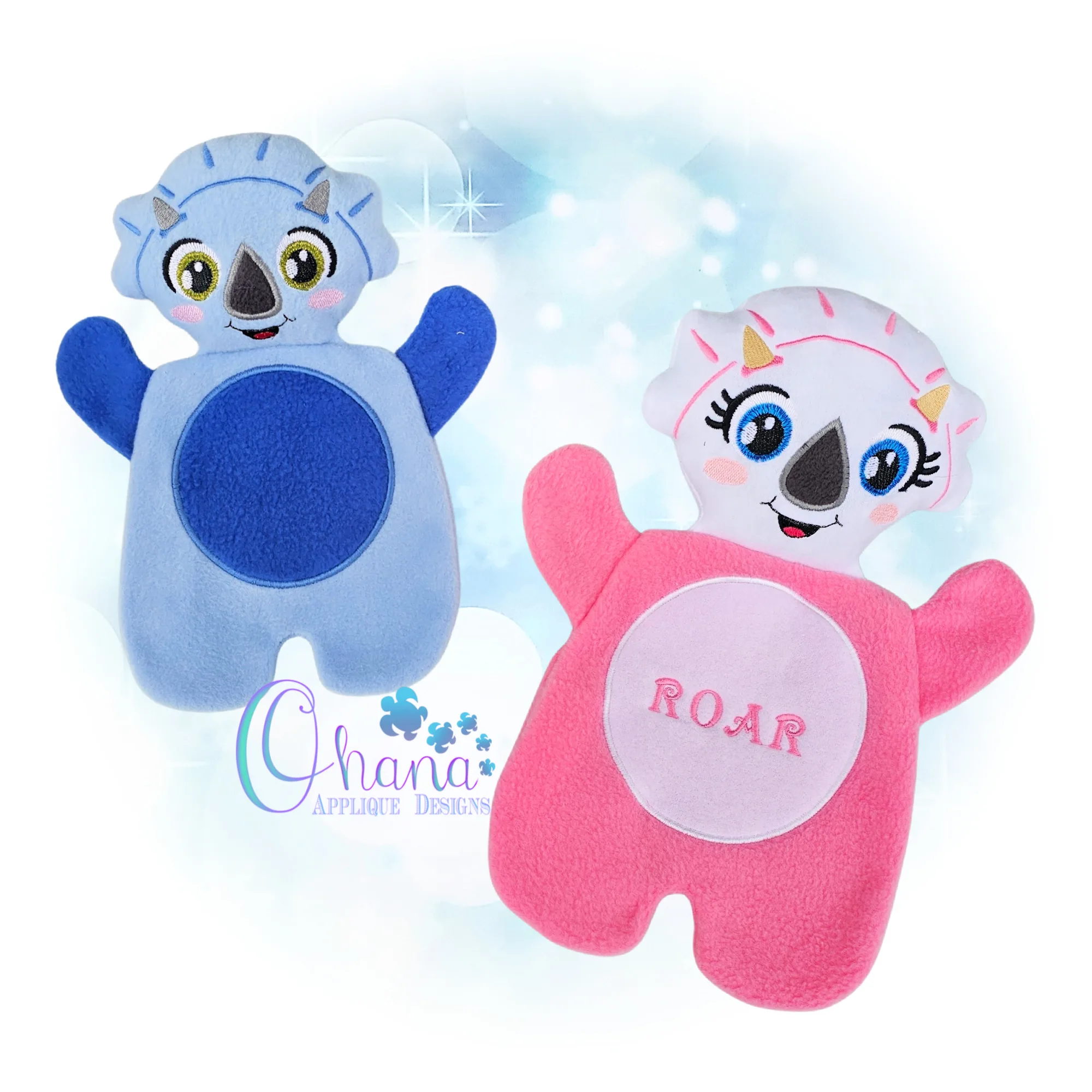 Especially Adorable Huggable Triceratops Flat Body Lovey Embroidery Design!