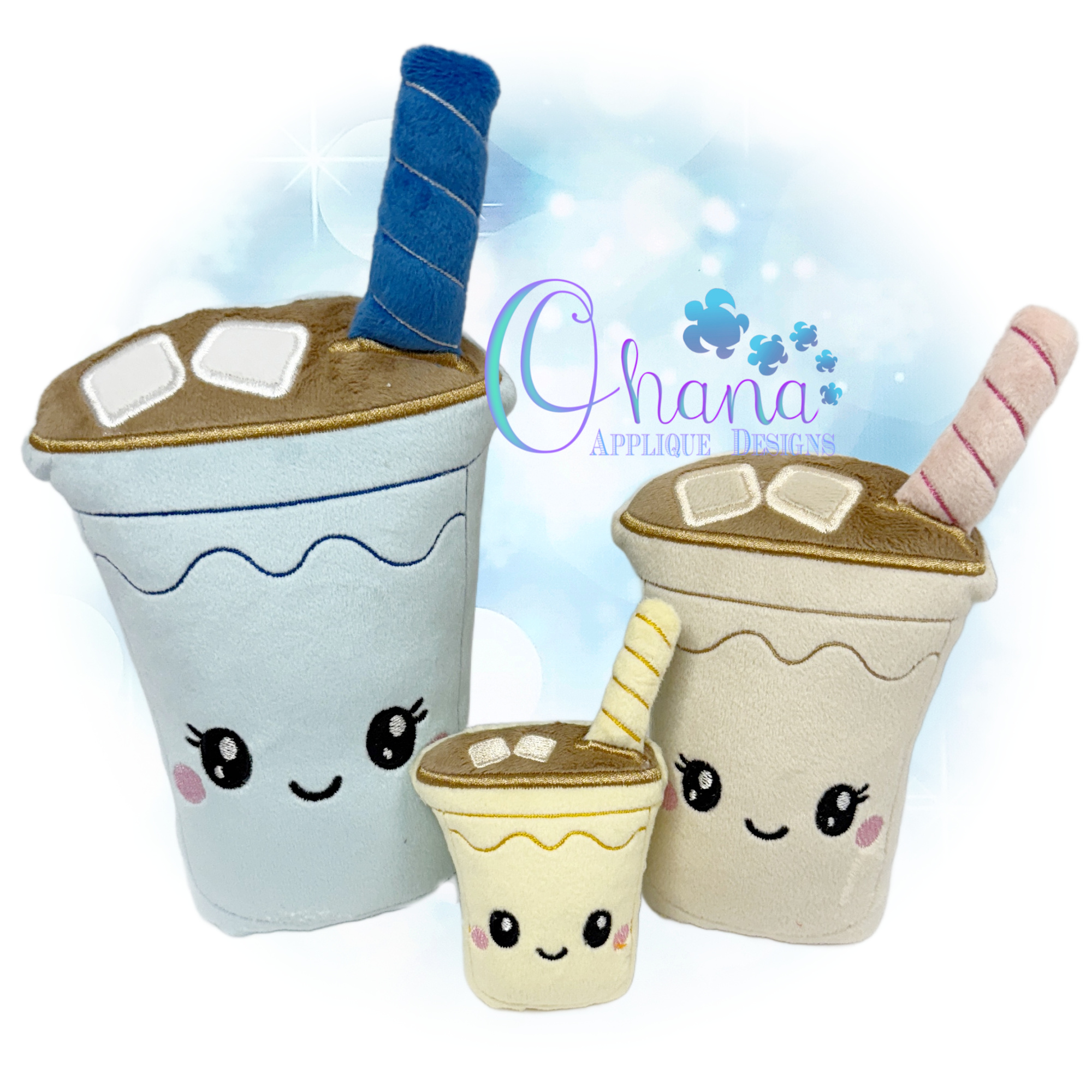 You will find the following hoop sizes are included for the Iced Coffee Stuffie Embroidery Design.