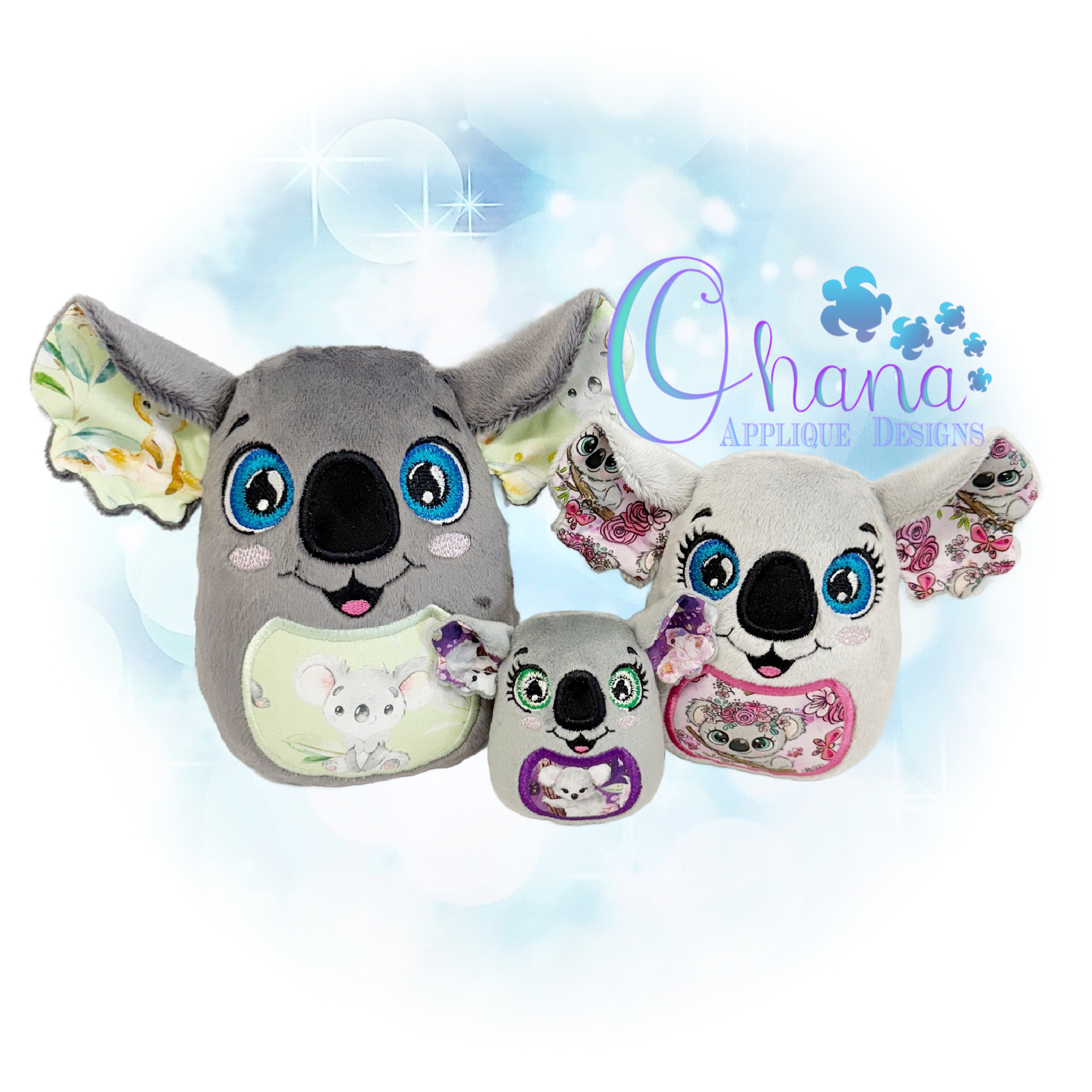 You will find the following hoop sizes are included for the Koala Egglet Stuffie Embroidery Design.