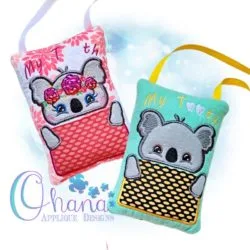 What better way to help out the tooth fairy than with this Koala Tooth Pillow Embroidery Design! Have one of these pillows on hand for when your child or grandchild is getting ready to start loosing teeth. They will simply place their tooth in the pocket and hang this holder on the door knob or bed post.