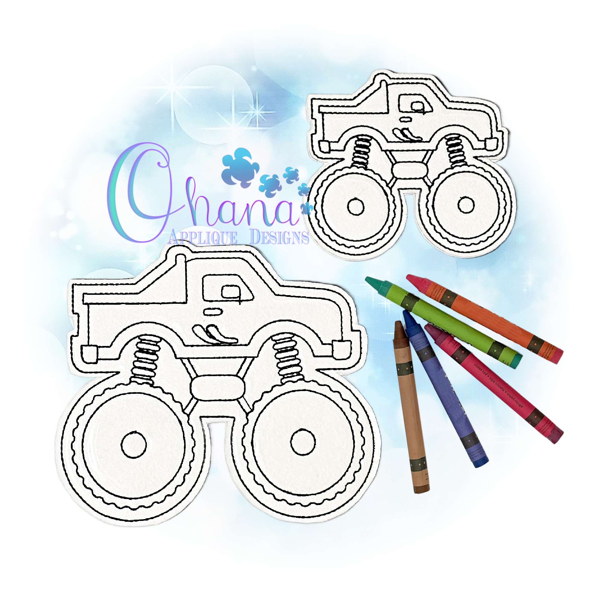 Creative Monster Truck Flat Coloring Doll Embroidery Design!