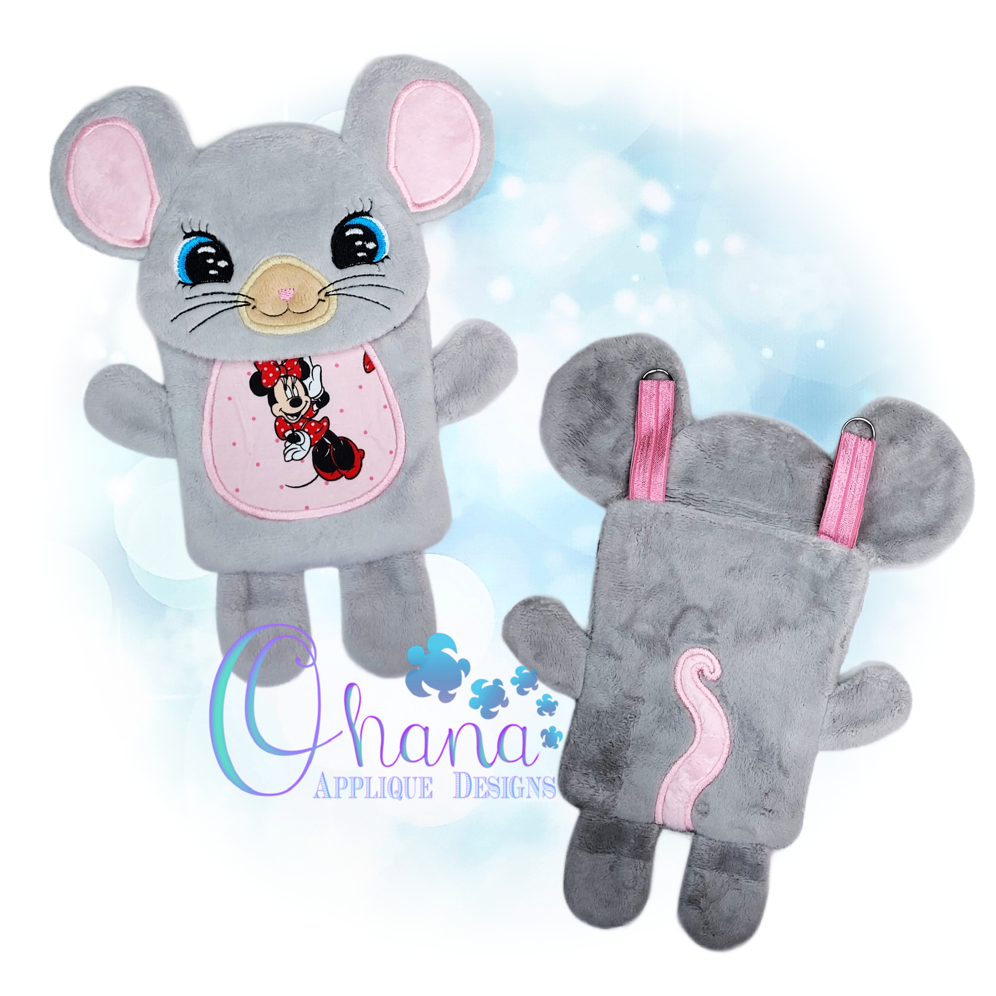 Stitchers can complete this adorable Mouse Flap Bag Purse Embroidery Design in six hoopings. You will complete the flap and front in the first couple of hoopings and then add them to the main bag in the rest of the six total hooping. This design is made almost entirely in the embroidery hoop. Stitchers will have to simply close a turning hole by hand stitching.