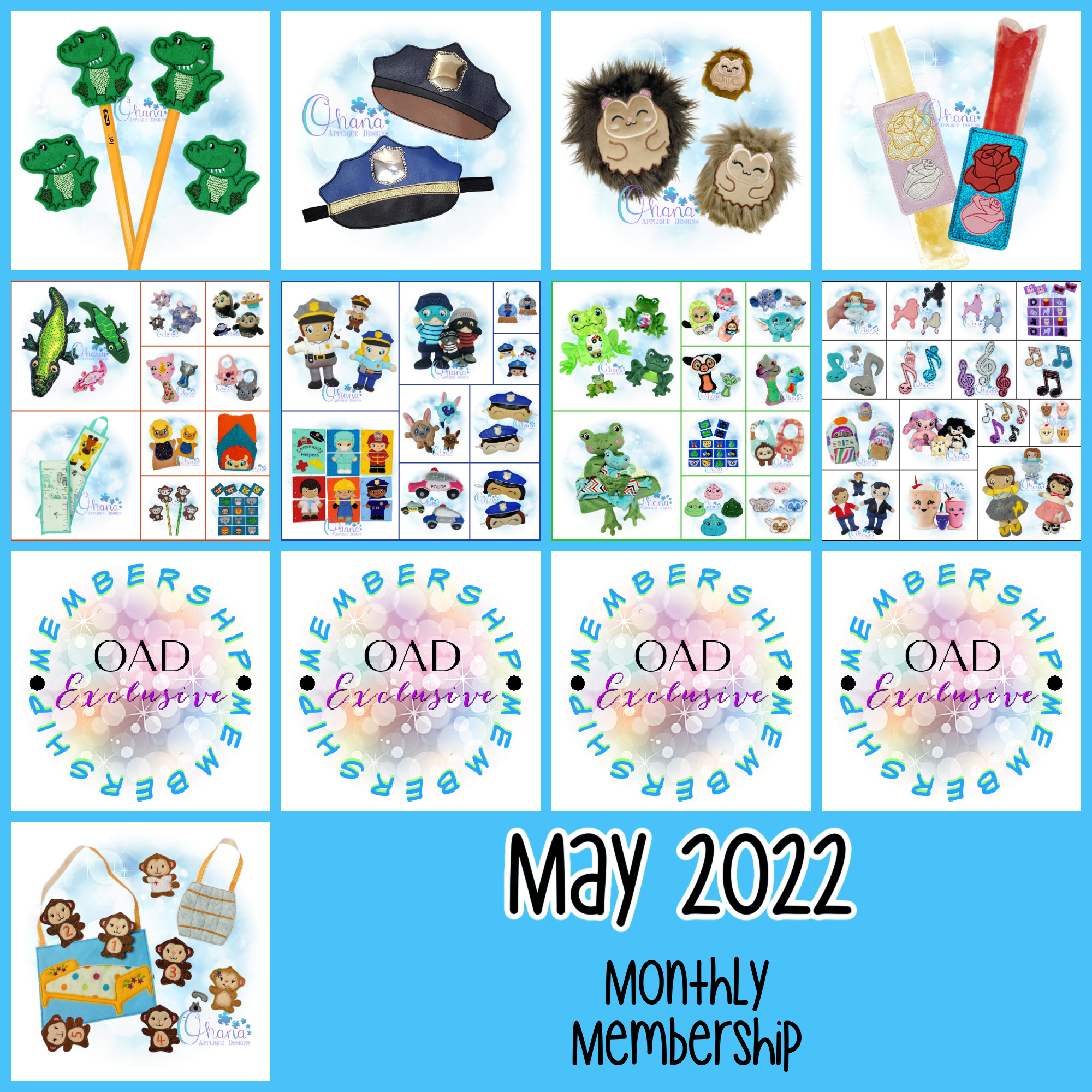 Purchasers will receive all the fabulous new designs released in the month. The OAD May 2022 Monthly Membership will include 4 weekly uploads. Purchasers will find new designs uploaded to your account on Fridays. There will be NO UPLOAD on the 5th Fridays of the months that have them. You will find each week will include a minimum of $50 in retail designs which will total of $200 minimum retail value for the month. Stitchers will also receive a few membership EXCLUSIVE designs in this bundle. Along with this, stitchers can join our membership group to vote for one past release to receive as a bonus for the month as well.