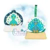 Stitchers can complete this Peacock Snowglobe Ornament embroidery design in one quick and easy hooping. You can stitch in either 4×4 or 5×7 size. Purchasers must also note that no fonts are included and you will need to add the personalization in either software or on your machine screen if it has those capabilities.
