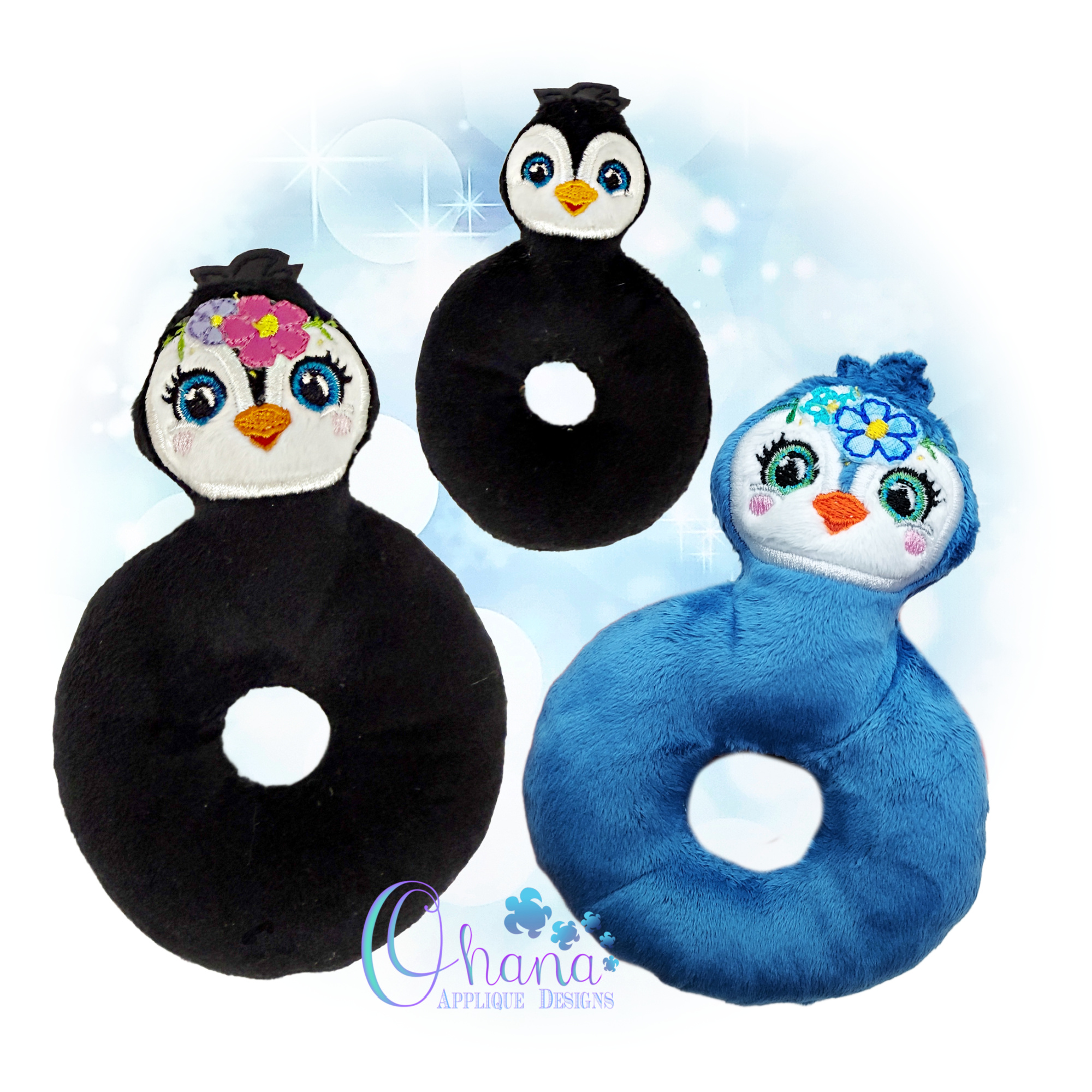 Bring a smile to many faces with this Penguin Ring Rattle Embroidery Design. Your loved ones will truly love these personalized rattles. You can stitch them as gifts or you can also involve the little ones in your life by letting them choose the colors and fabrics. Especially Great for Baby Showers along with Birthday Parties!