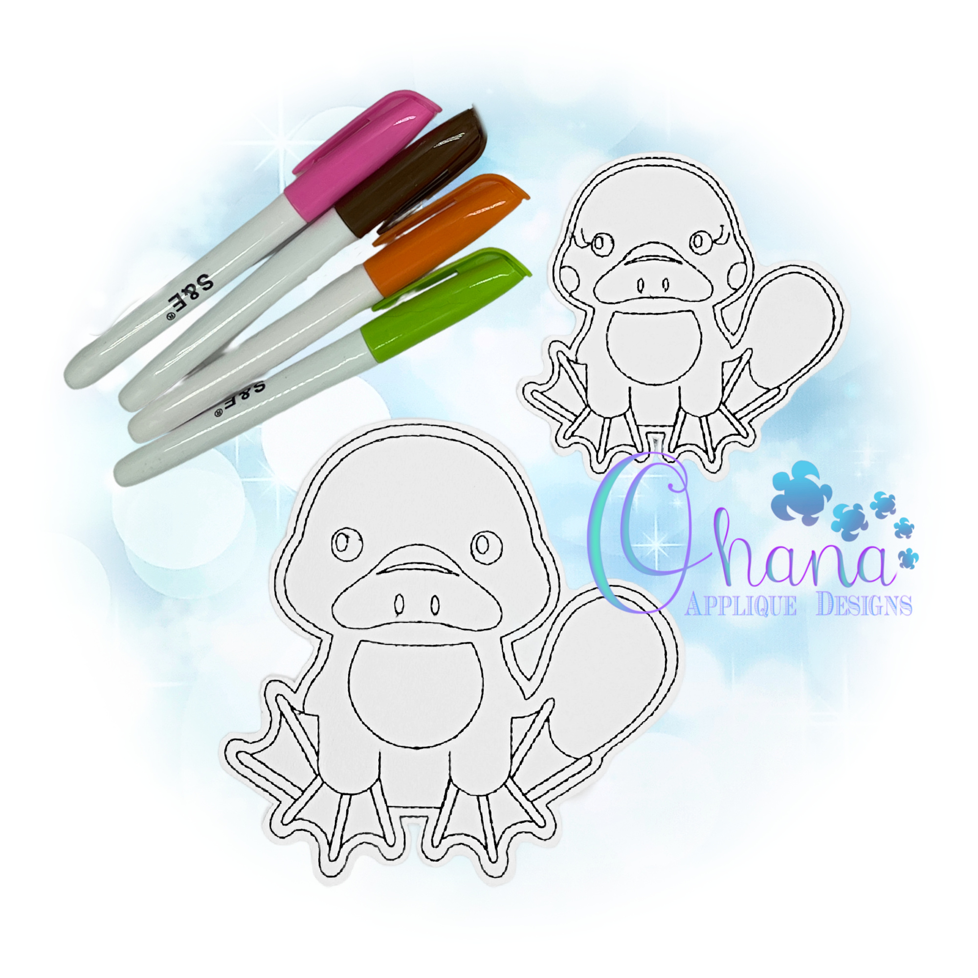 Stitchers can complete this creative Platypus Flat Coloring Doll design in one easy hooping. You will find this project is beginner friendly. Purchasers will also find a helpful chart in JPG form included as well as PDF written instructions. Embroiderers can also find tons of encouragement and ideas in our fabulous Facebook Fan Group as well!