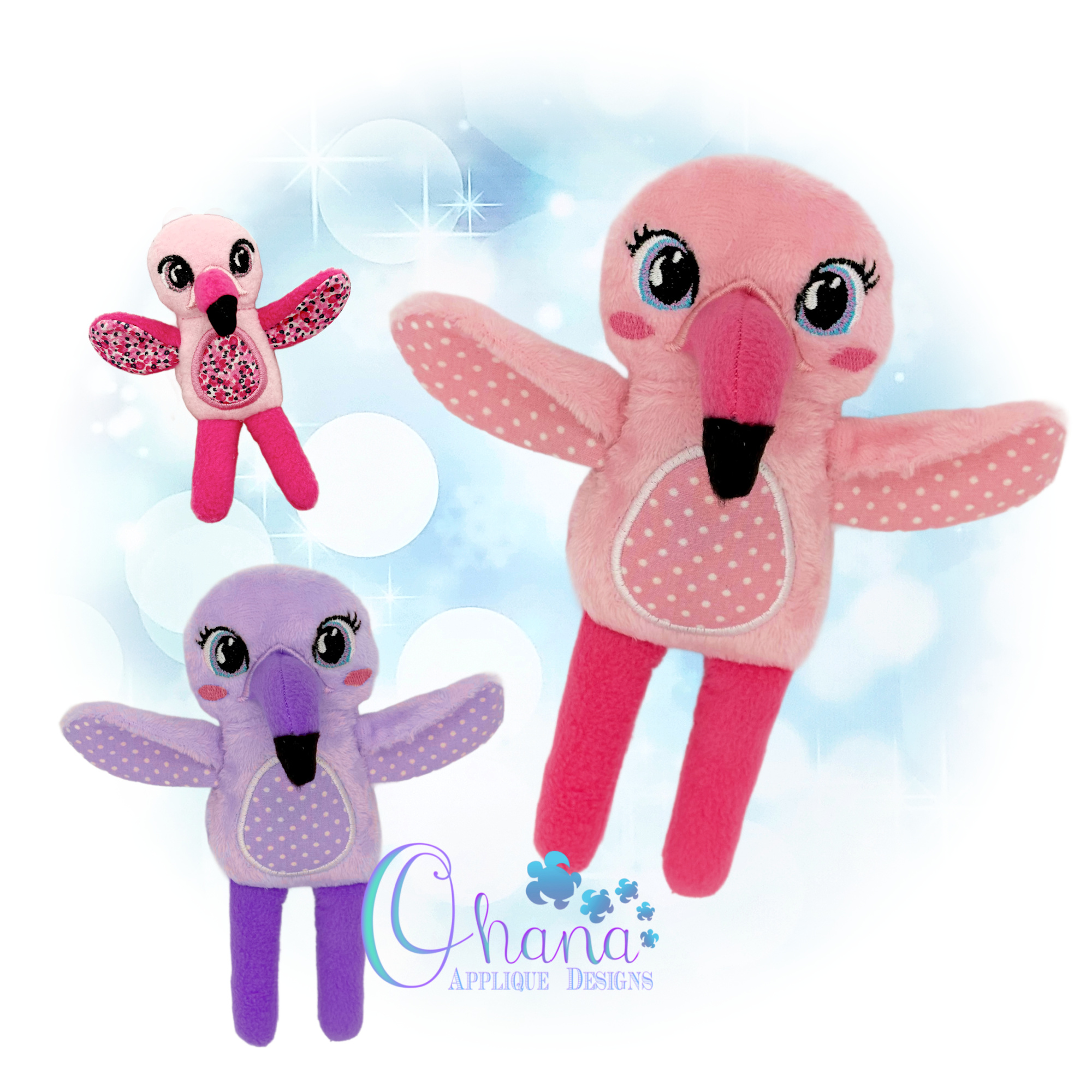 You will find the following hoop sizes are included for the Rag Doll Flamingo Stuffie Embroidery Design.