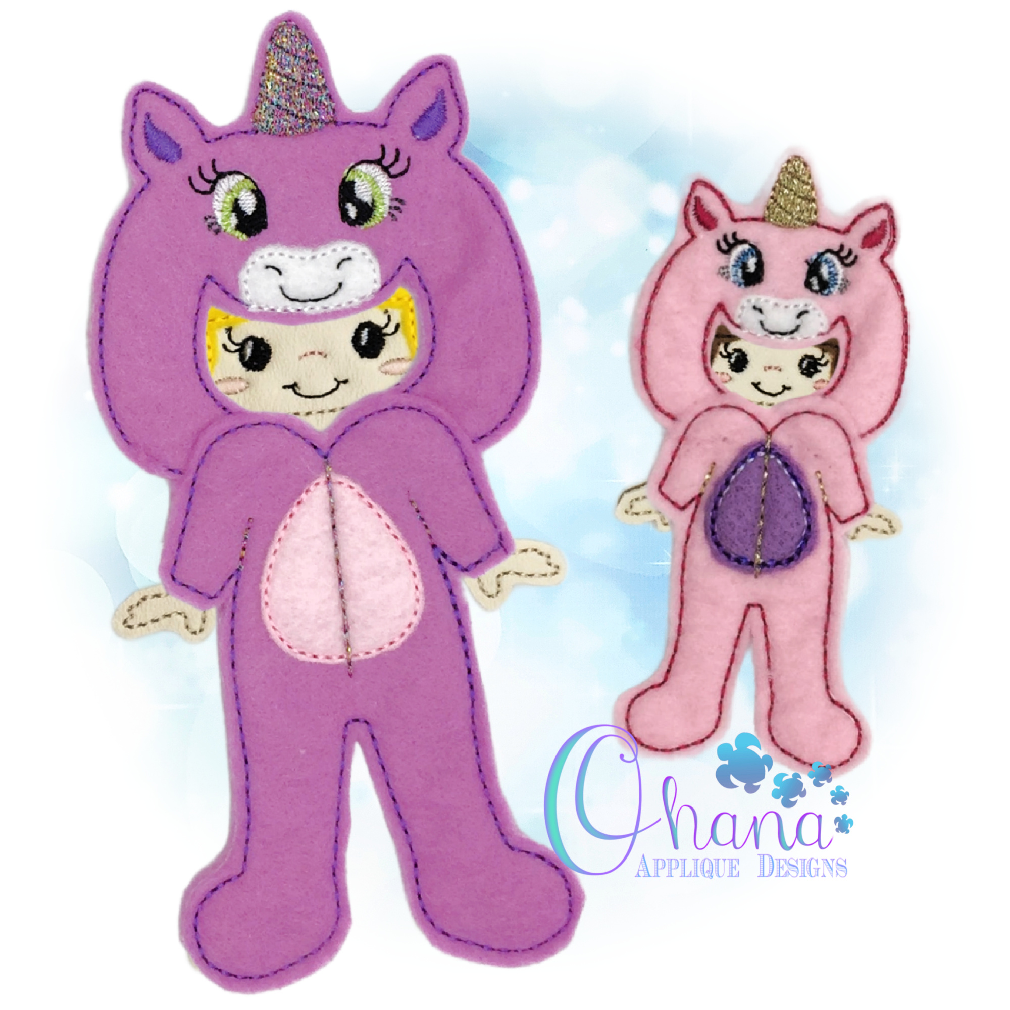 Super quick in the hoop stitch outs make this Ruby Unpaper Doll Pack a great addition to Ruby’s look. The Ruby Unpaper Doll has her in a bathing suit which could also double as underwear, and a unicorn hoodie and footy pajamas complete the Ruby Unpaper Doll Unicorn Pajamas and is super cute! Stitchers can complete each of these Embroidery Designs in one quick and easy hooping. You can stitch a single design or combine multiple files using your machine or own software.