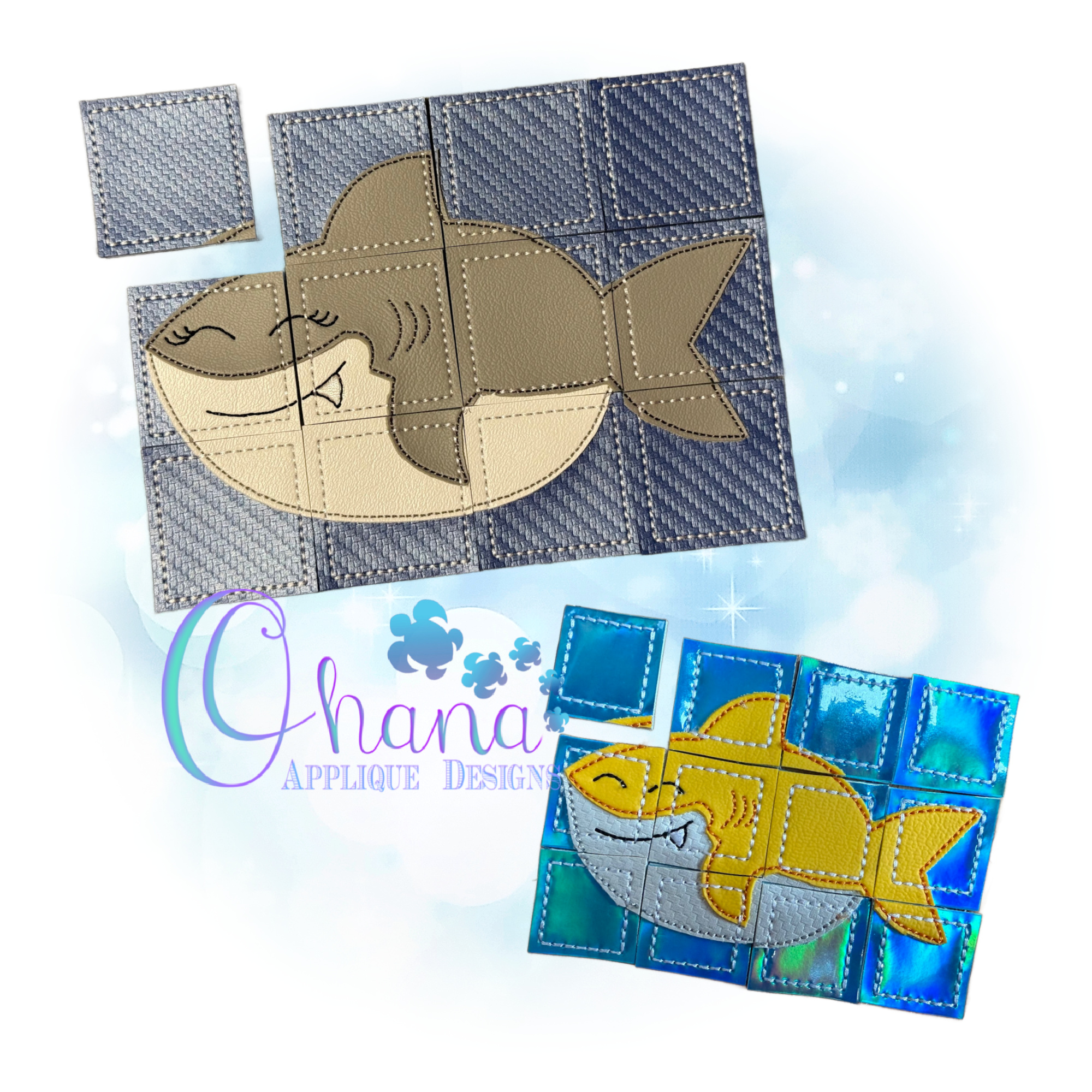 Stitchers will enjoy creating this Shark Puzzle Embroidery Design and children can be included to choose the various colors or materials used. This do-it-yourself puzzle will be a cute creation that is separated into 12 blocks. When finished stitching, the blocks are cut to form individualized puzzle pieces.