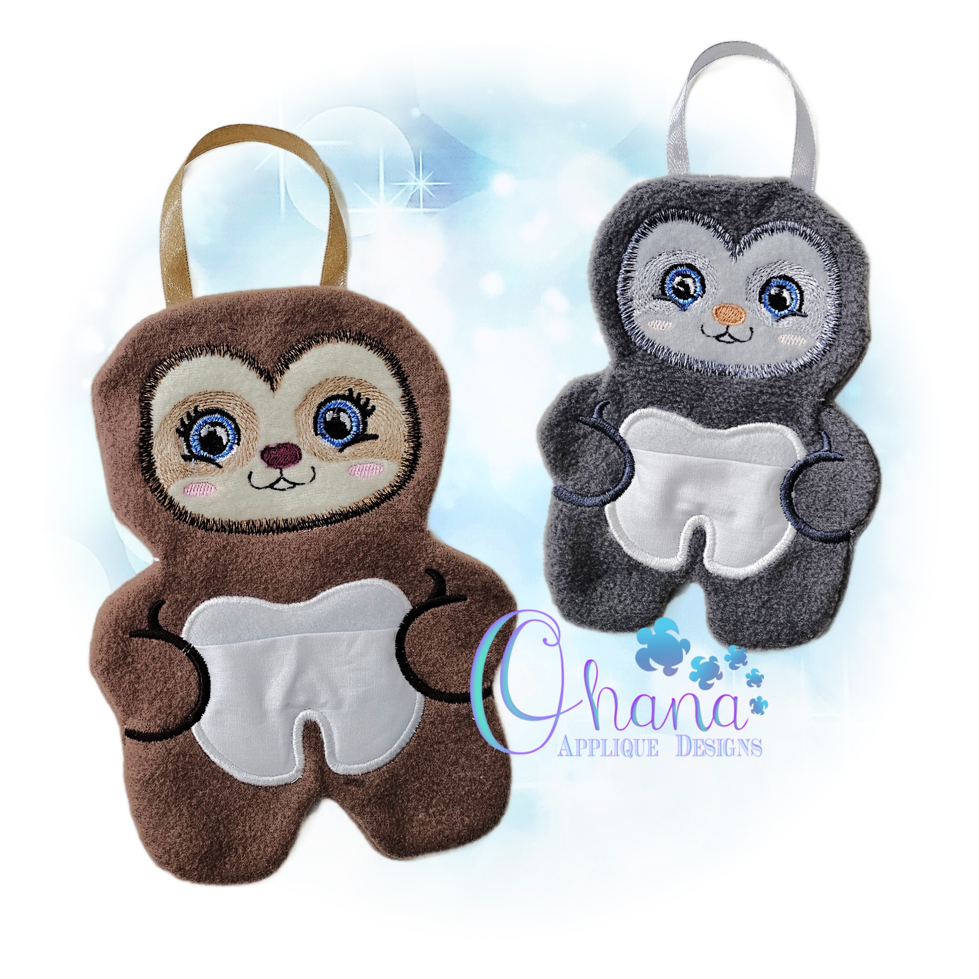 What better way to help out the tooth fairy than with this Sloth Tooth Buddy Embroidery Design! Have one of these buddies on hand for when your child or grandchild is getting ready to start loosing teeth. They will simply place their tooth in the pocket and hang this holder on the door knob or bed post.  When morning arrives the tooth fairy will have had time to exchange the tooth for money or a small surprise! Much easier than the tooth fairy having to dig around under a pillow to find the tooth!