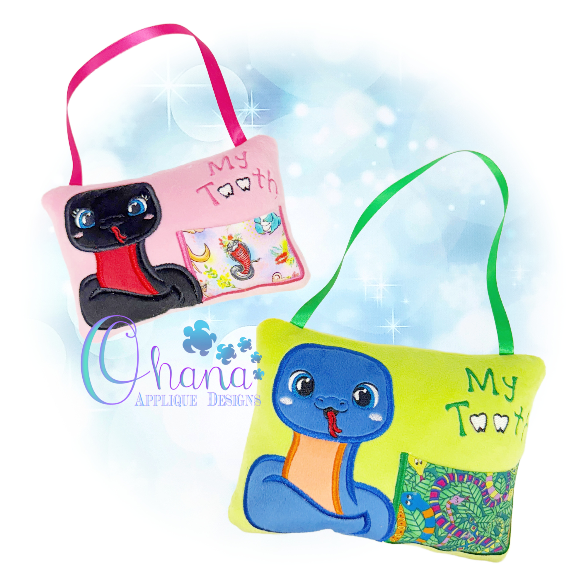 What better way to help out the tooth fairy than with this Snake Tooth Fairy Pillow Embroidery Design! Have one of these pillows on hand for when your child or grandchild is getting ready to start loosing teeth. They will simply place their tooth in the pocket and hang this holder on the door knob or bed post.