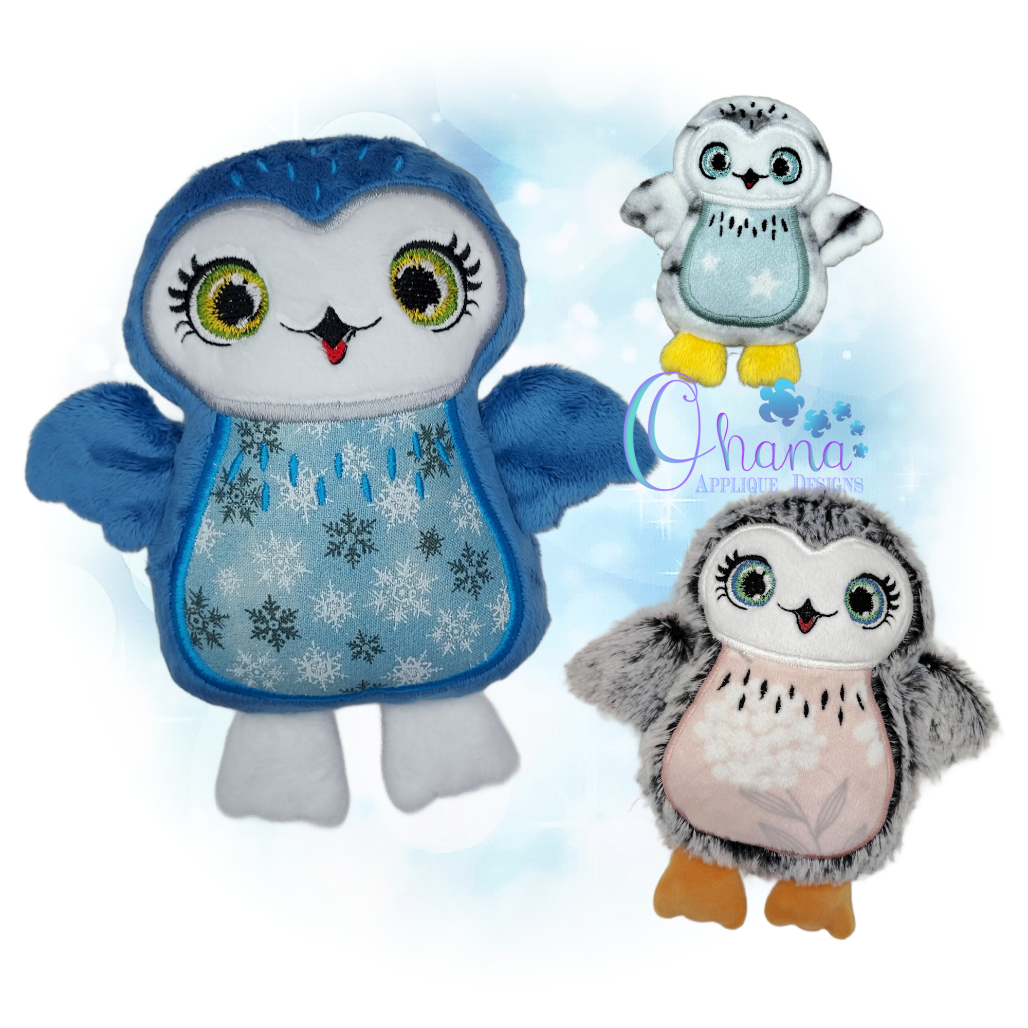 You will find the following hoop sizes are included for the Snowy Owl Stuffie Embroidery Design.