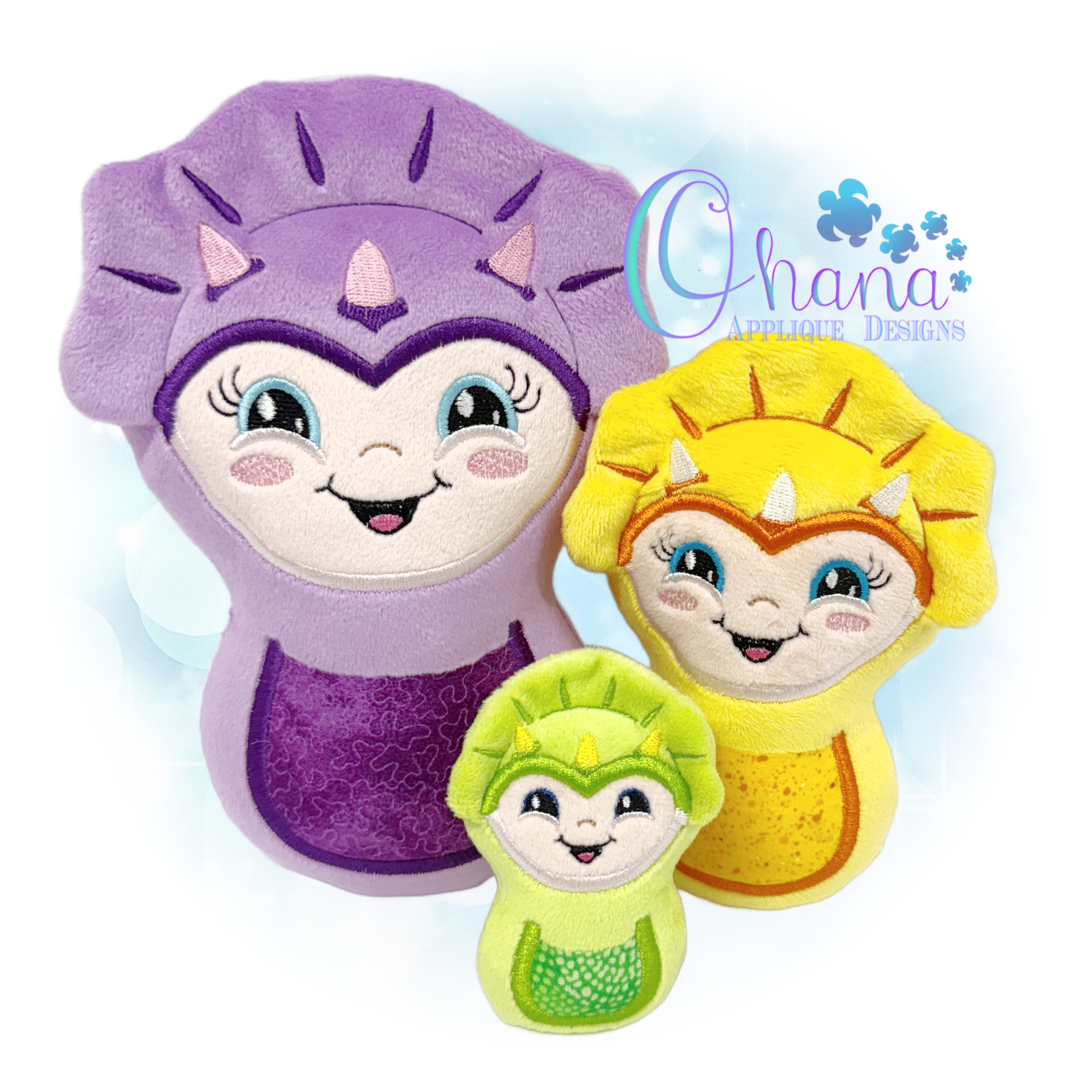 Bring a smile to many faces with this Triceratops Pocket Pet Stuffie Embroidery Design. Your loved ones will truly love these personalized plushies. You can stitch them as gifts or you can also involve the little ones in your life by letting them choose the colors and fabrics. Especially Great for gifts along with Birthday Parties!