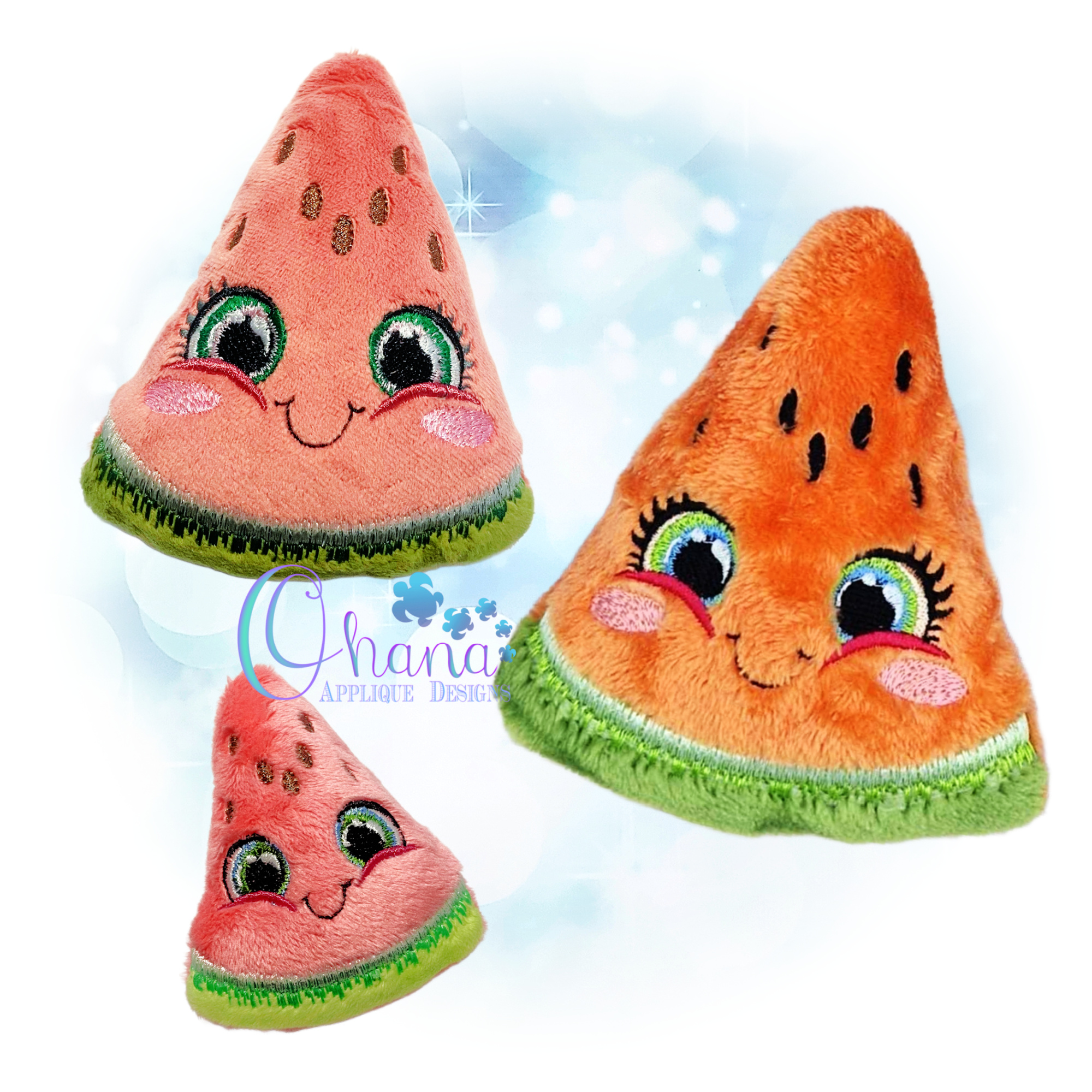 You will find the following hoop sizes are included for the Watermelon Slice Stuffie Embroidery Design.